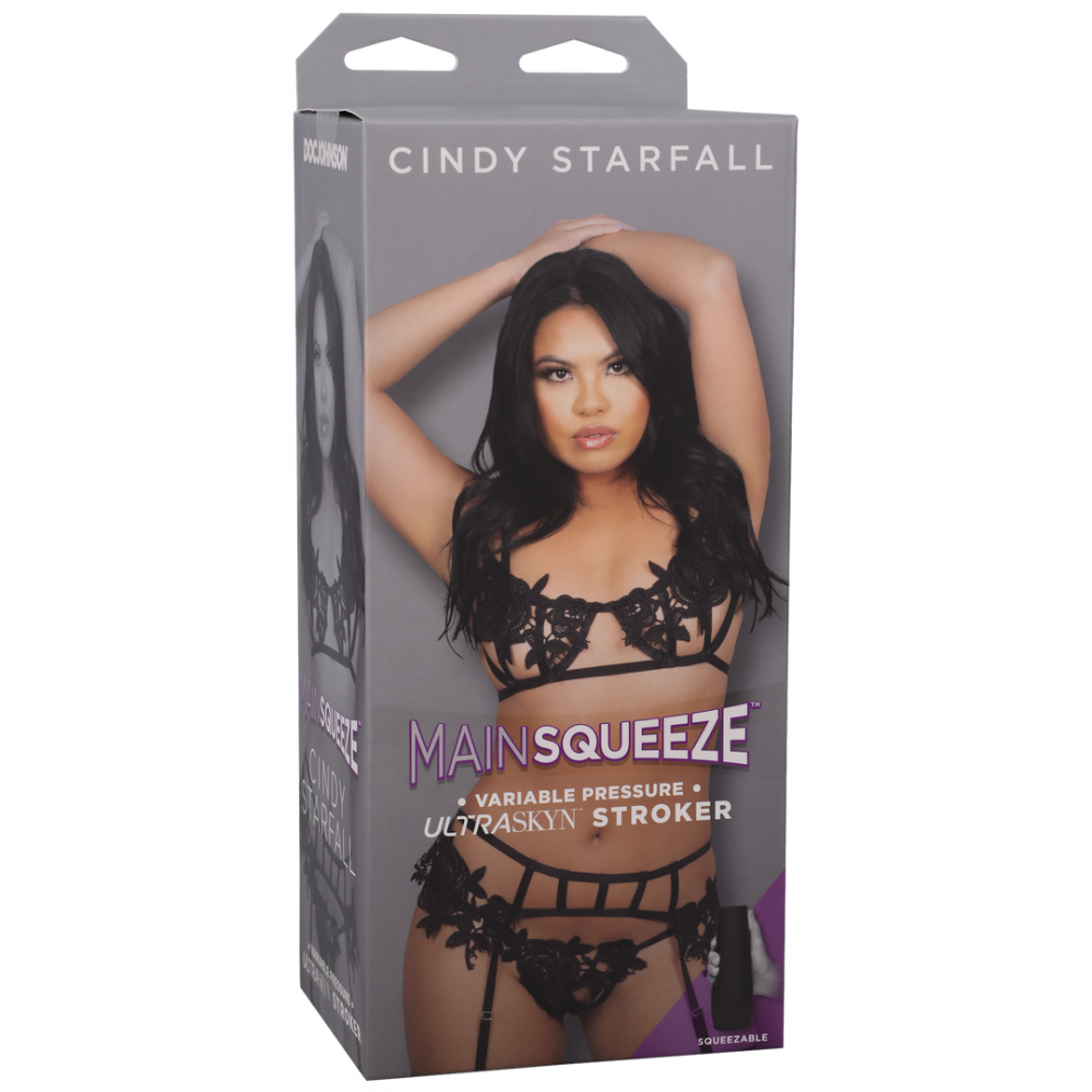 Bring home Cindy Starfall with this Main Squeeze molded directly from her body. Handcrafted in lifelike ULTRASKYN inside a hard outer case, Cindy's Main Squeeze features a tight, textured interior that warms to the touch and feels just like the real thing.